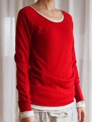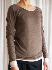 薄くて軽いシルクカシミヤのラグランセーターです。その手触り感はふんわりとやわらかくて、うっとり。着ていることを忘れてしまうくらい薄くて軽いのに、とても温かく、一度着ると手放せなくなるほど。冷え込みの強い冬にはセーターの下に重ねて、あったかインナーとしても大活躍。丈が長めなので、腰回りもあたたかです。冬は重ねて、春や秋は1枚で、大変重宝なセーターです。同セーターの重ね着も、リバーシブル気分で着回せて便利です。